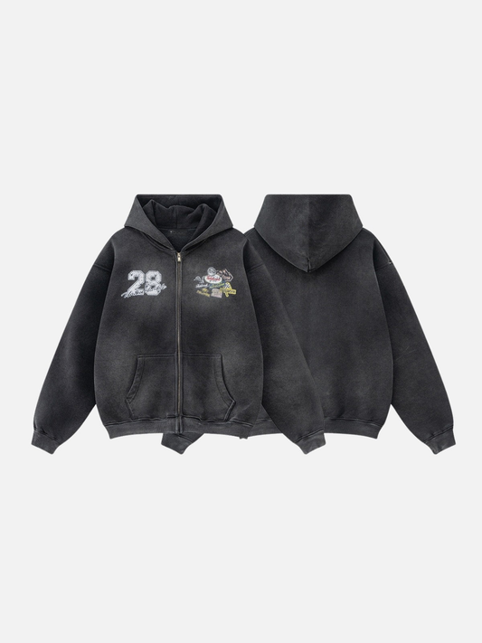 PATCHRACE - Felpa con cappuccio oversize con zip e grafica