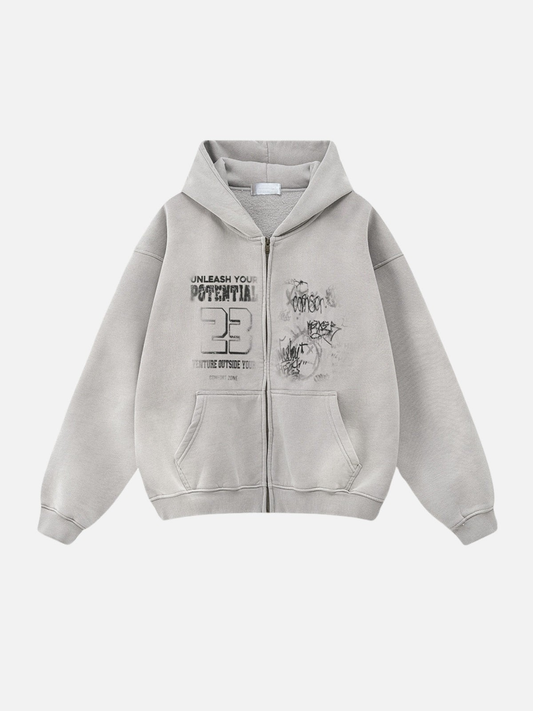 POTENZIALE - Felpa con cappuccio e zip oversize stampata