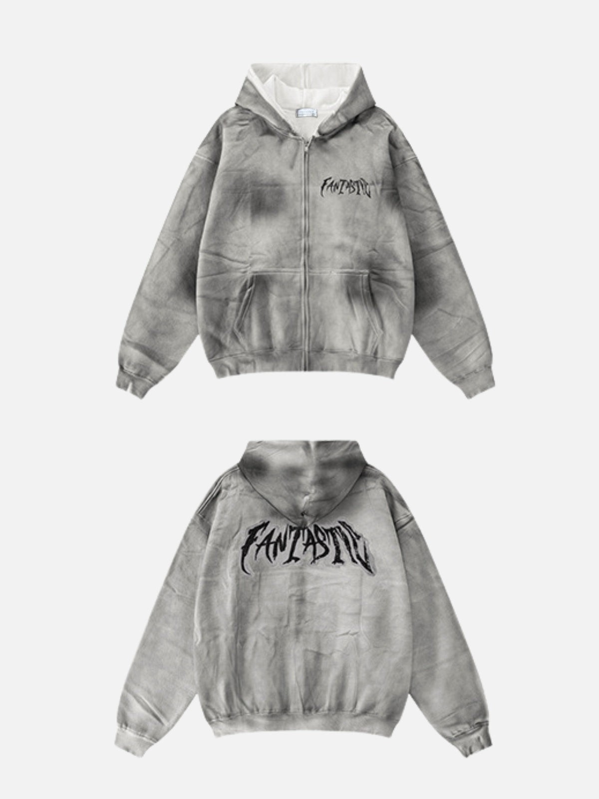 FANTASTICO - Felpa con cappuccio e zip oversize con stampa